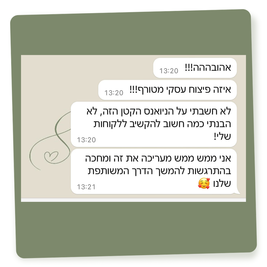 "הייתי רוצה להיות הפתרון הראשון שהלקוחה שלי חושבת עליו"