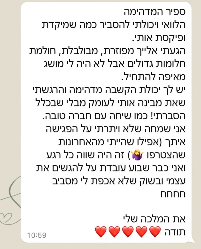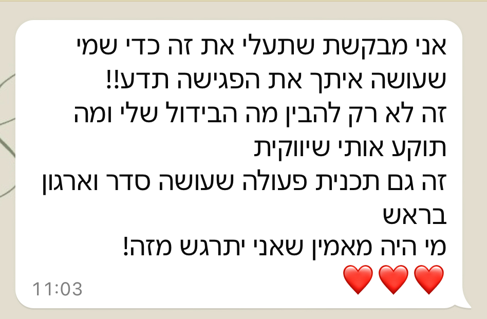 - לא רוצה ליווי ארוך אלא פגישה אחת שתעשה סדר ותדליק לך את הניצוץ.