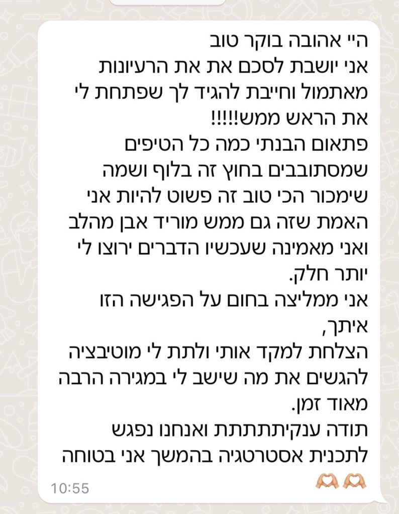 - עייפה מעצות גנריות - ורוצה פידבק חד, אסטרטגי, מותאם אישית
