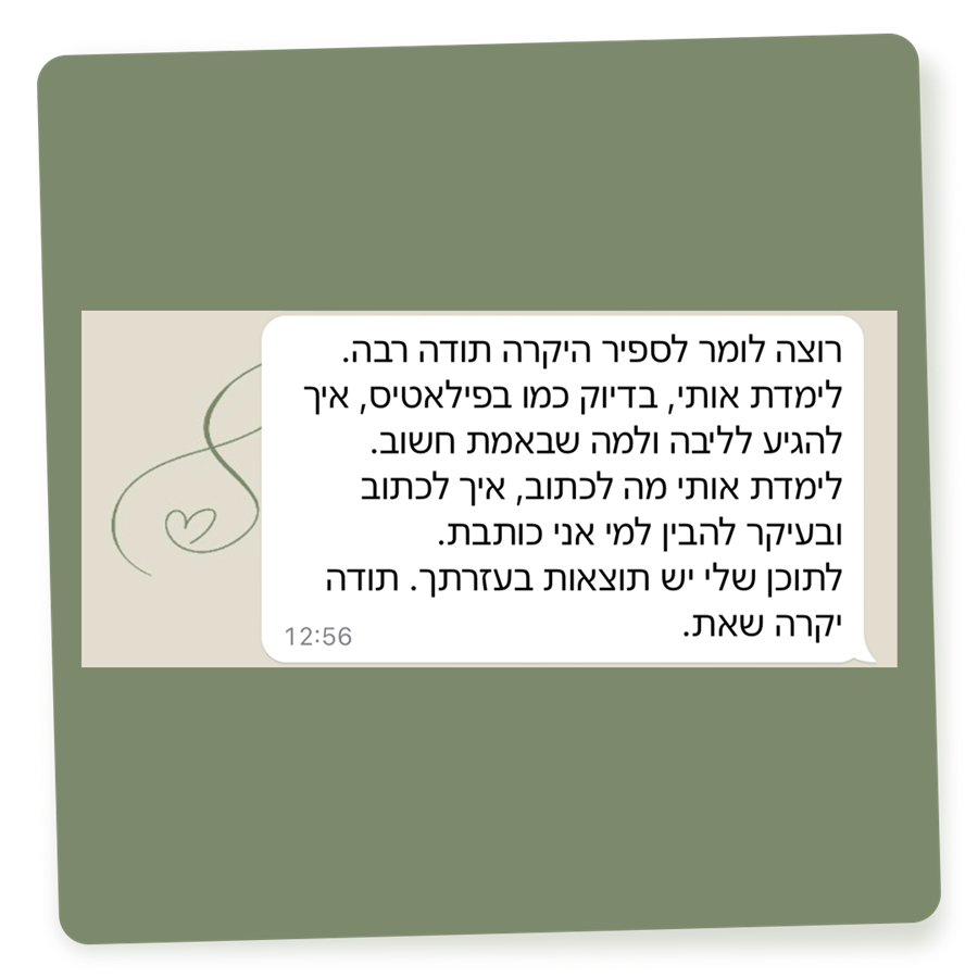- מיקוד חד בדברים שתוכלי לקדם עכשיו. לא תוכנית ענקית למגירה, אלא פעולות שמייצרות תנועה